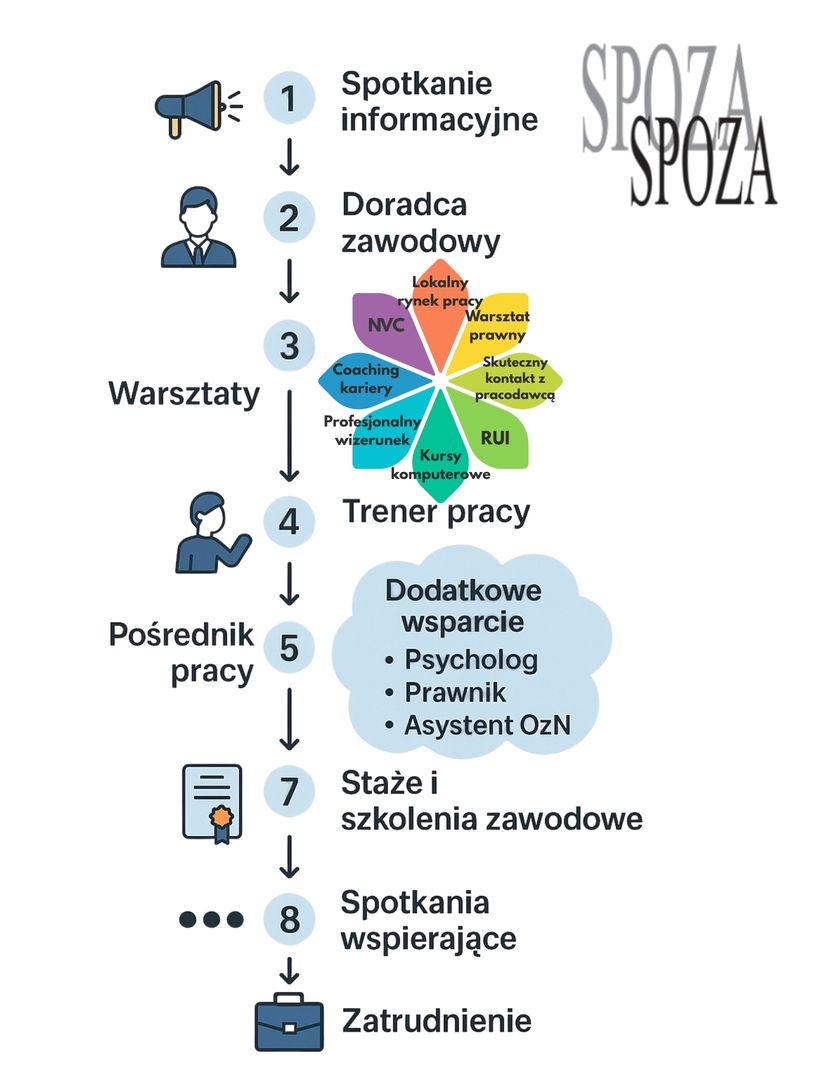 Nie pracujesz, jesteś osobą z niepełnoprawnościami, mieszkasz w Warszawie lub w województwie mazowieckim, chcesz znaleźć pracę, chcesz zmienić swoje życie, przyjdź na spotkanie informacyjne. Spotkania informacyjne odbywają się w każdy poniedziałek o godzinie 14:00 w Poradni dla Osób z Niepełnosprawnościami Stowarzyszenia SPOZA, Warszawa, ul Sienna 63/80. klatka I, I piętro.