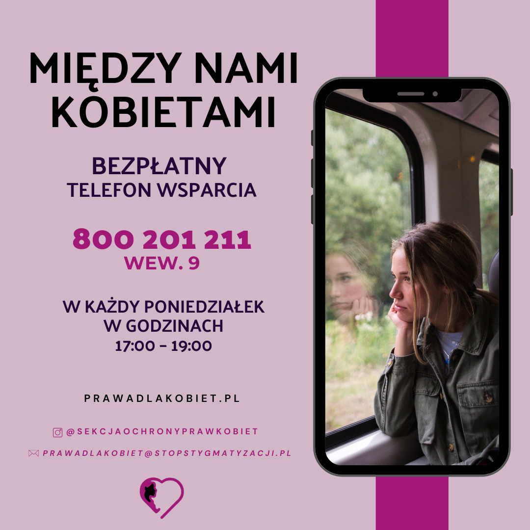 W każdy poniedziałek, między 17:00 a 19:00, jesteśmy dostępne pod numerem 800 201 211 (wew. 9). Bez względu na to, czy masz pytanie, chcesz podzielić się tym, co Cię cieszy, czy szukasz wsparcia w trudnej chwili – po prostu zadzwoń.