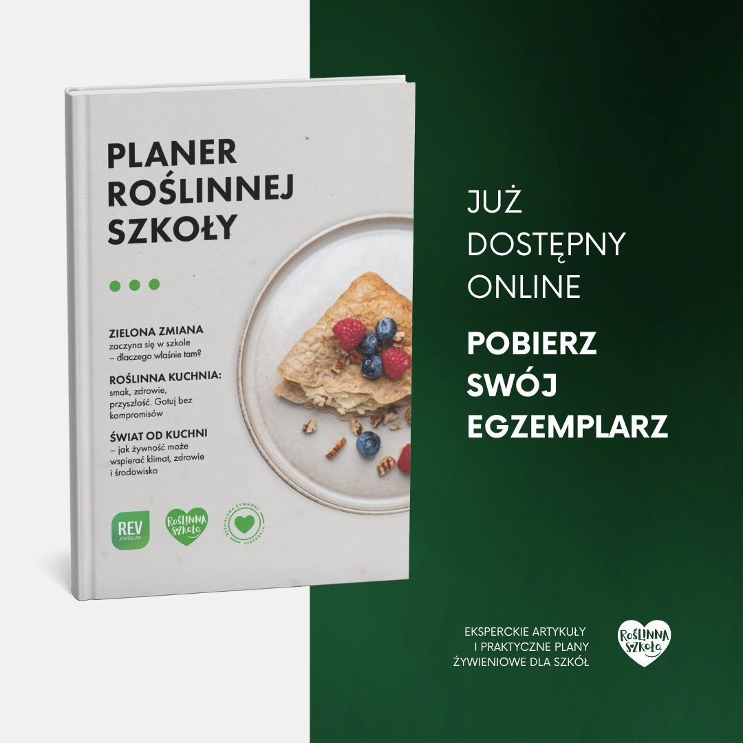 W szkolnej stołówce może być zdrowo, smacznie, etycznie i ekologicznie. Nowa publikacja Green REV Institute - Planer Roślinnej Szkoły, dostarcza nowych przepisów, inspiracji i informacji na temat żywności. To narzędzie dla całej społeczności szkolnej, stworzone z myślą o zapewnieniu każdemu dziecku zdrowej żywności, która będzie wspierać w zdobywaniu wiedzy i utrzymaniu dobrego samopoczucia. E-book już online!