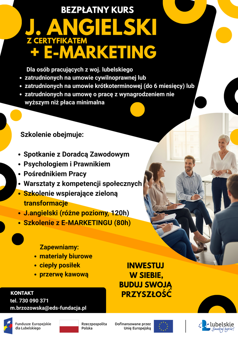 Bezpłatny Kurs J.ANGIELSKI + E-MARKETING z certyfikatem woj.lubelskie.