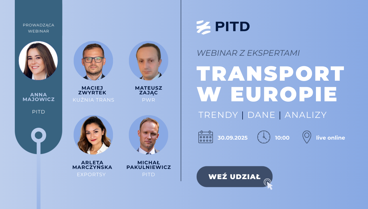 ▶ Zapraszamy na webinar LIVE, gdzie zaprezentujemy dane z kwartalnego raportu, łączącego najważniejsze wskaźniki rynkowe z interpretacjami i rekomendacjami menedżerów, właścicieli firm oraz operacyjnych liderów transportu z całej Europy.