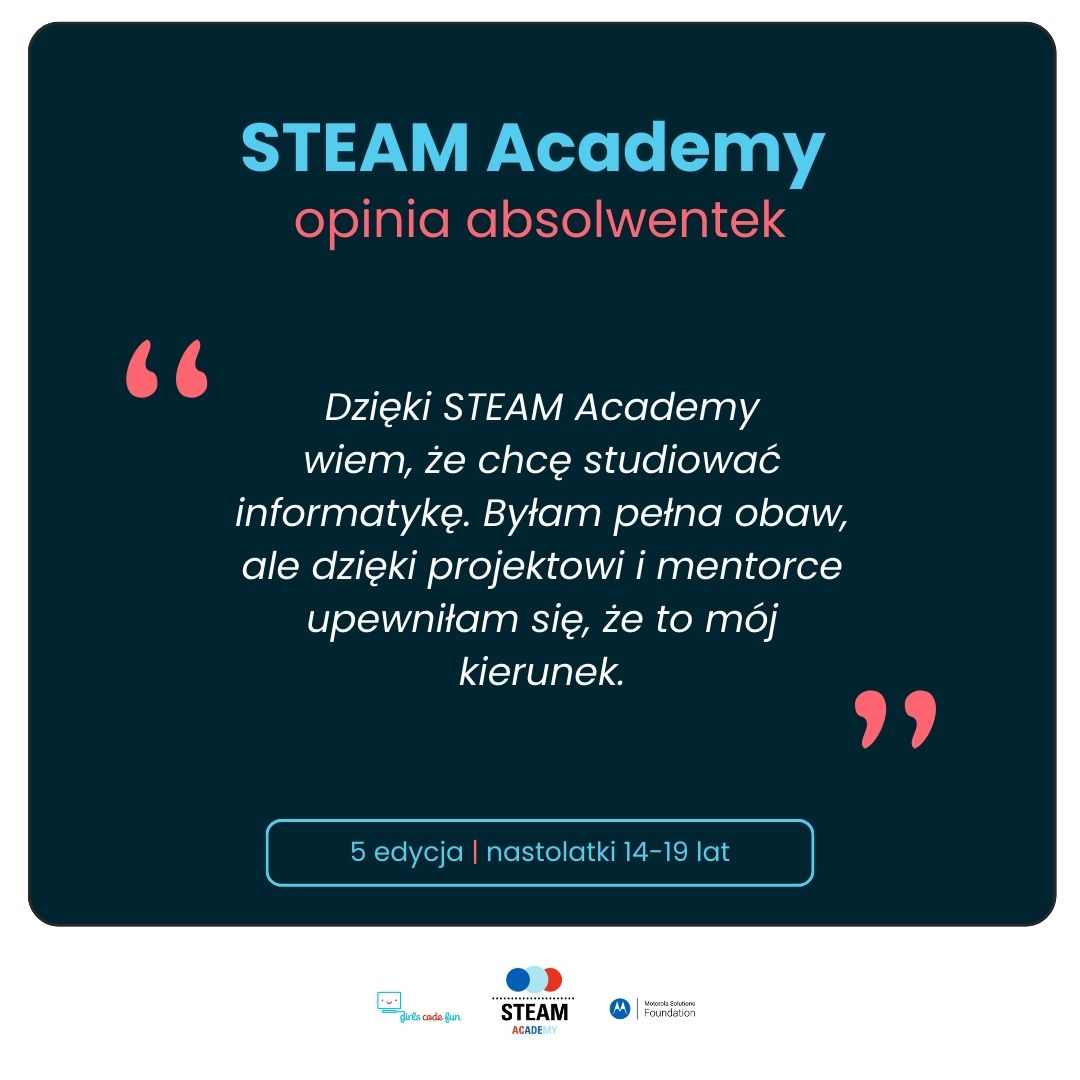 🌐 Szczegóły i formularz zgłoszeniowy: https://girlscodefun.pl/projekty/steam-academy-5-edycja/
