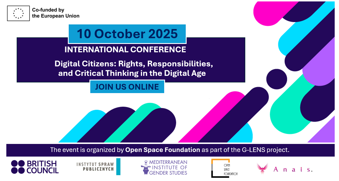 Fundacja British Council Polska i Fundacja Open Space z Bułgarii serdecznie zapraszają do udziału online w międzynarodowej konferencji "Cyfrowi obywatele: prawa, obowiązki i krytyczne myślenie w erze cyfrowej", która odbędzie się 10 października br. w Sofii.