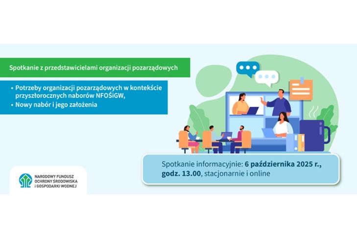 Narodowy Fundusz Ochrony Środowiska i Gospodarki Wodnej zaprasza przedstawicieli organizacji pozarządowych na spotkanie z udziałem członków zarządu NFOŚiGW, które odbędzie się 6mpaździernika w formule hybrydowej.