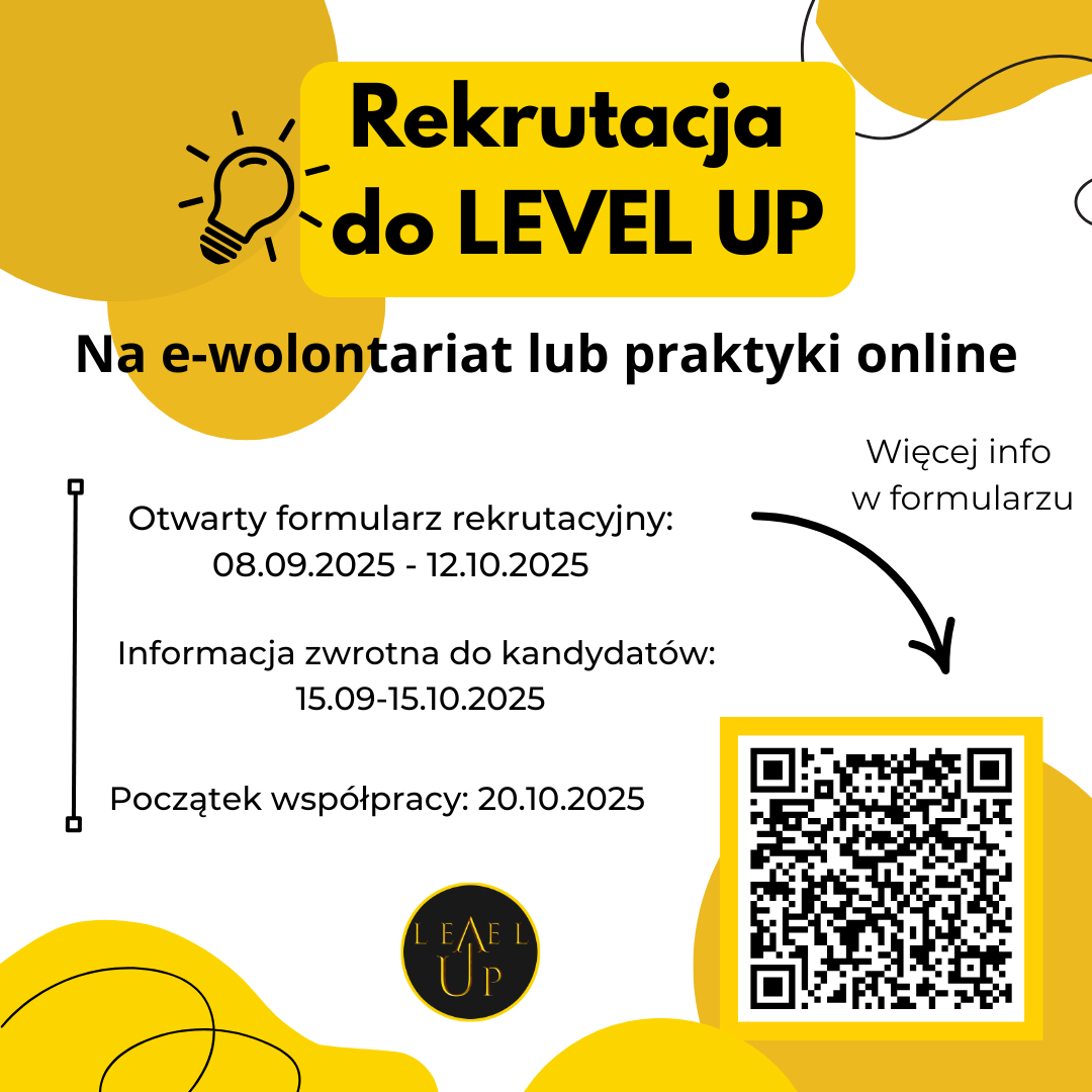 📢 Rekrutacja do LEVEL UP trwa! Szukasz swojej drogi? Chcesz zacząć działać, ale nie wiesz w jakim obszarze? Dołącz do jednego z 14 zespołów w LEVEL UP i rozwijaj swoje umiejętności.
