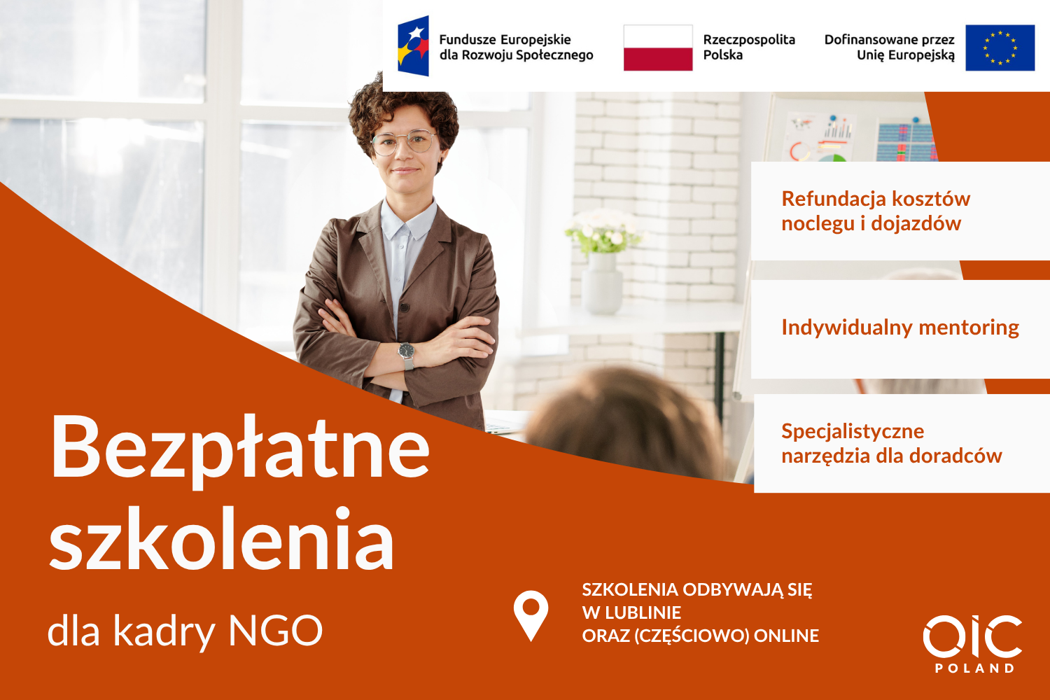 Serdecznie zapraszamy pracowników, wolontariuszy oraz członków organizacji pozarządowych do udziału w bezpłatnych szkoleniach z certyfikatem, realizowanych w formule hybrydowej (50% zajęć online).