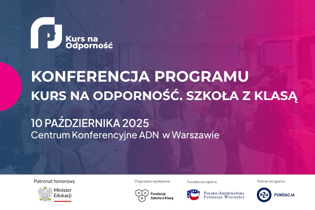 10 października, w Światowy Dzień Zdrowia Psychicznego eksperci Fundacji Szkoła z Klasą spróbują odpowiedzieć na pytanie jak sprawić, by szkoła była miejscem, które nie tylko uczy, lecz także wzmacnia odporność i poczucie wspólnoty? Podczas konferencji inaugurującej program Kurs na Odporność. Szkoła z Klasą w wykładzie dr hab. Aleksandra Tłuściak-Deliowska, prof. APS, przedstawi naukowe podstawy znaczenia klimatu szkoły jako jednego z kluczowych współcześnie zasobów edukacyjnych. W panelu dyskusyjnym psycholog Patryk Hałajczak, dr Marzena Cypryańska-Nezlek z Uniwersytetu SWPS, Magdalena Jurewicz ze Szkoły Edukacji PAFW i UW wraz z Izabelą Meyzą rozmawiać będą o odporności psychicznej w czasach zmiani roli szkoły w jej budowaniu.