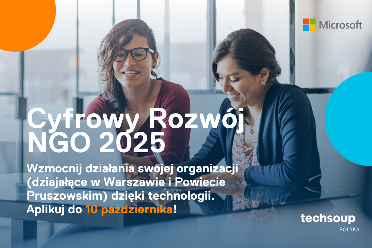 Organizacje z powiatu pruszkowskiego i Warszawy mogą dołączyć do programu grantowego Cyfrowa Podróż NGO 2025. Dzięki wsparciu Microsoft i Fundacji TechSoup otrzymają narzędzia, doradztwo i szkolenia, które pomogą im przejść przez prawdziwą cyfrową zmianę.