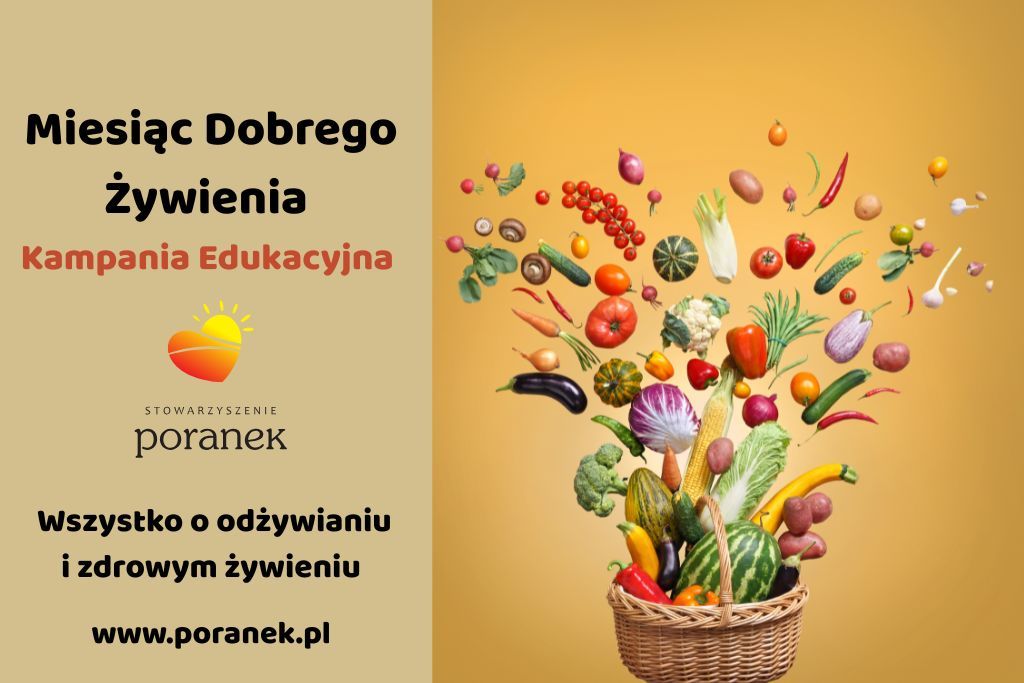 Stowarzyszenie PORANEK z radością ogłasza start szóstej edycji kampanii “Miesiąc Dobrego Żywienia”, której celem jest promocja świadomego podejścia do odżywiania oraz kształtowanie zdrowych nawyków żywieniowych. W ramach tegorocznych działań udostępnimy bogaty zestaw materiałów edukacyjnych dostępnych online: od artykułów i filmów, po bezpłatne webinary z udziałem ekspertów w przedmiotowym temacie.