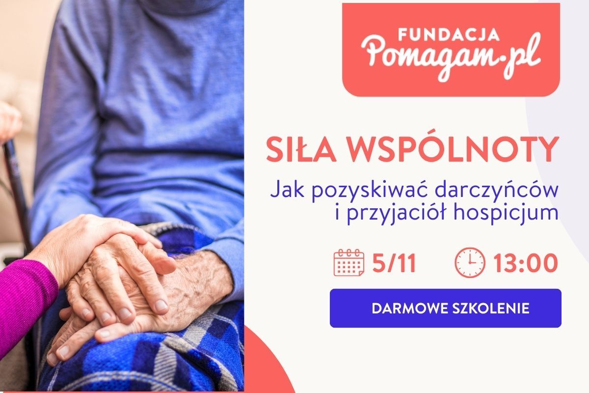 Z myślą o tym zapraszamy na spotkanie „Siła wspólnoty: jak pozyskiwać darczyńców i przyjaciół hospicjum”, które pomoże Wam wzmocnić relacje z darczyńcami, budować społeczność wokół misji hospicjum i skutecznie angażować partnerów do wspólnego działania.