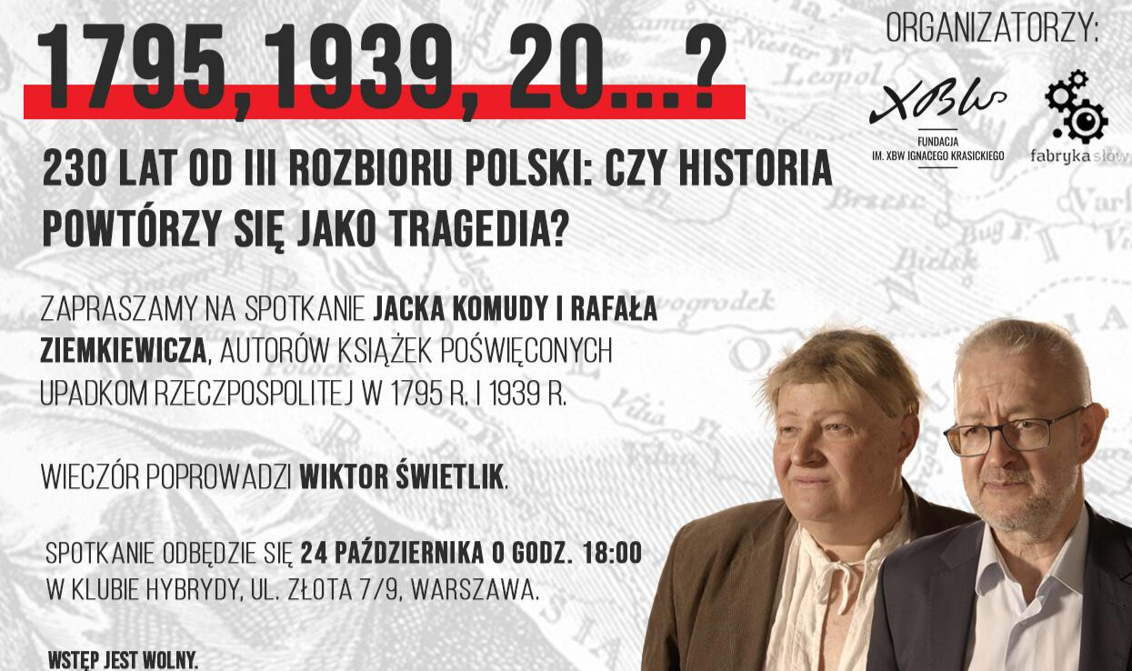 W 230. rocznicę III rozbioru Polski zapraszamy na debatę o przyczynach upadku I i II Rzeczypospolitej. Zastanowimy się, czy błędy z przeszłości powracają w nowych formach.