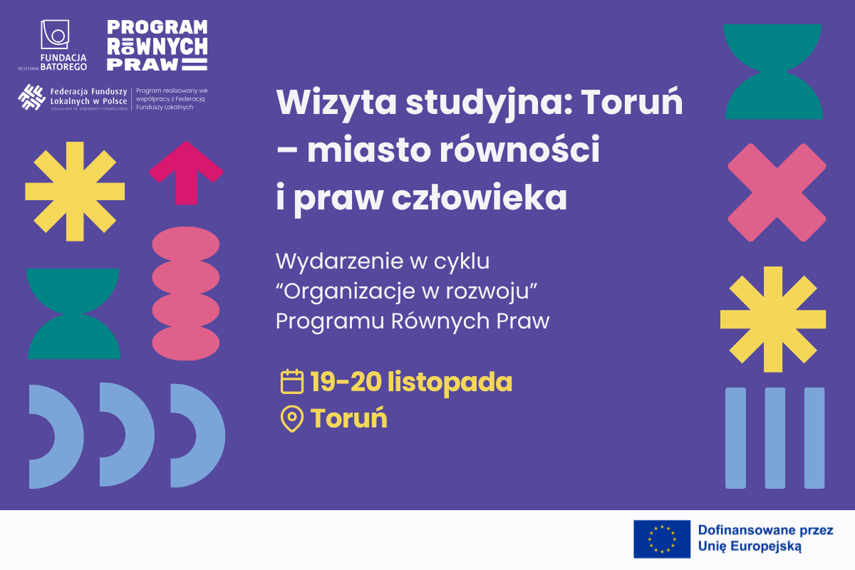 Fundacja im. Stefana Batorego serdecznie zaprasza do udziału w wizycie studyjnej „Toruń - miasto równości i praw człowieka”, która odbędzie się w dniach 19-20 listopada 2025 r. i będzie okazją do poznania praktycznych działań na rzecz równego traktowania, współpracy międzysektorowej oraz wymiany doświadczeń z toruńskimi organizacjami społecznymi.