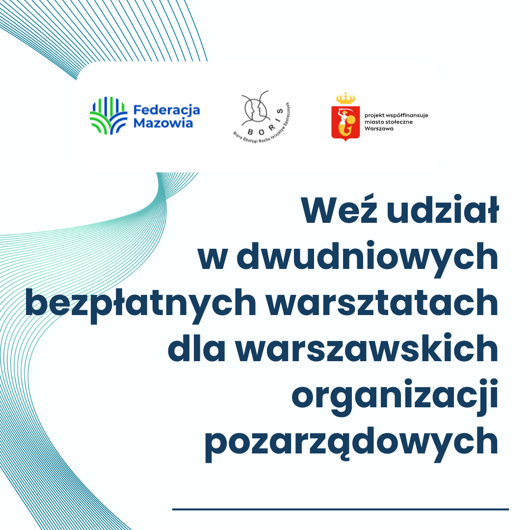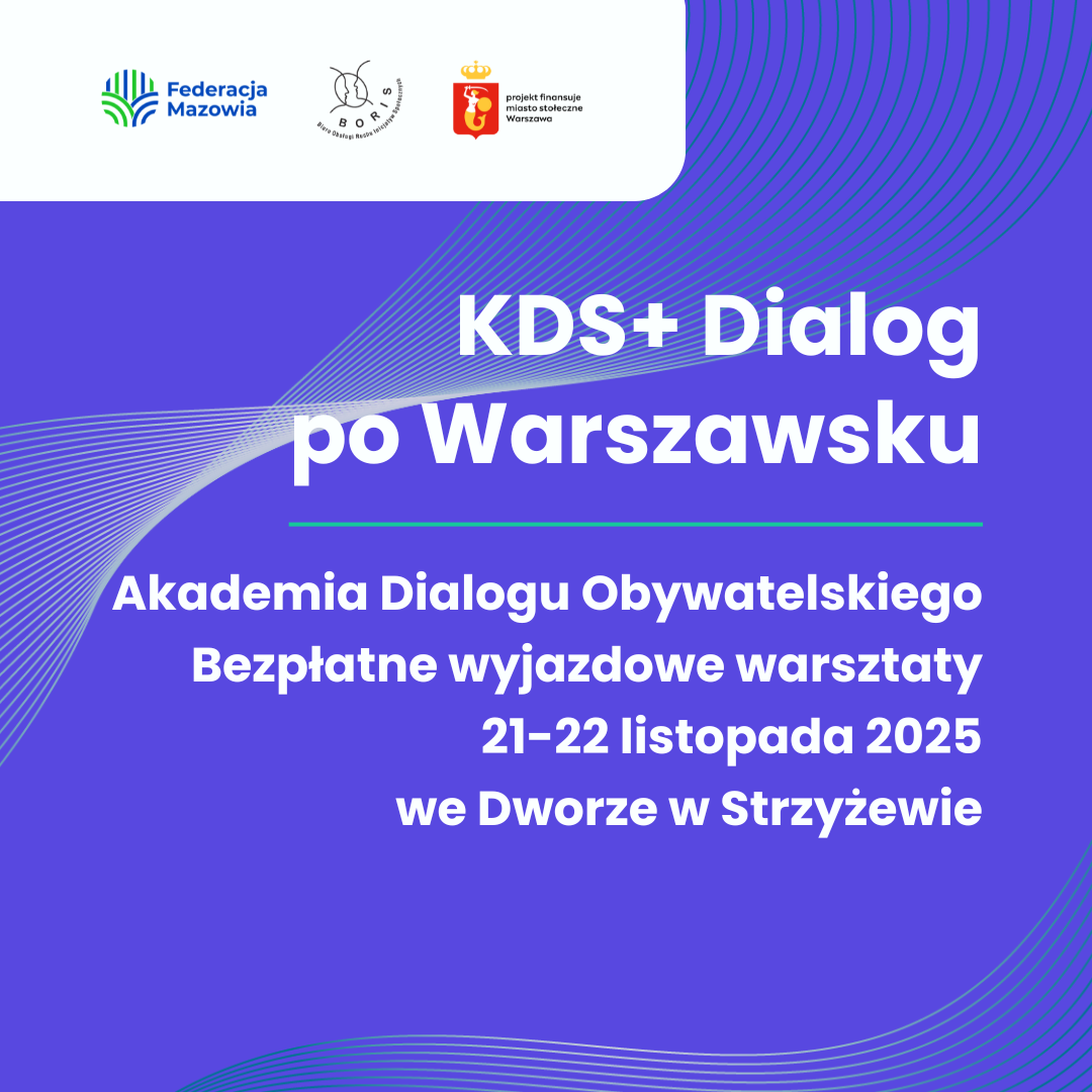 Akademię Dialogu Obywatelskiego organizują Federacja Mazowia i Stowarzyszenie BORIS w ramach projektu „KDS+ Dialog po warszawsku”.