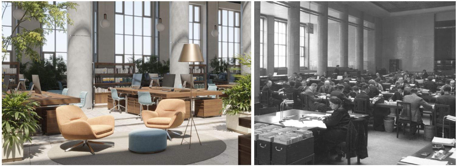 Koegzystencja cyfryzacji i natury najbardziej widoczna jest właśnie w metamorfozie biur, które mają tworzyć przestrzeń pozytywnej stymulacji, wspierając zdrowie i well-being pracowników. Takie ambicje towarzyszą projektowi rewitalizacji b. Urzędu Telekomunikacyjnego i Telegraficznego w Warszawie, perle przedwojennego modernizmu, zlokalizowanemu na wprost Pałacu Kultury i Nauki. Hołd oddany historii współgrać tu będzie z wdrażaniem rozwiązań przyszłości. Dziedziniec zaś przemieni się w zieloną strefę kulinarno-rekreacyjną, by współgrać z rytmem serca stolicy.