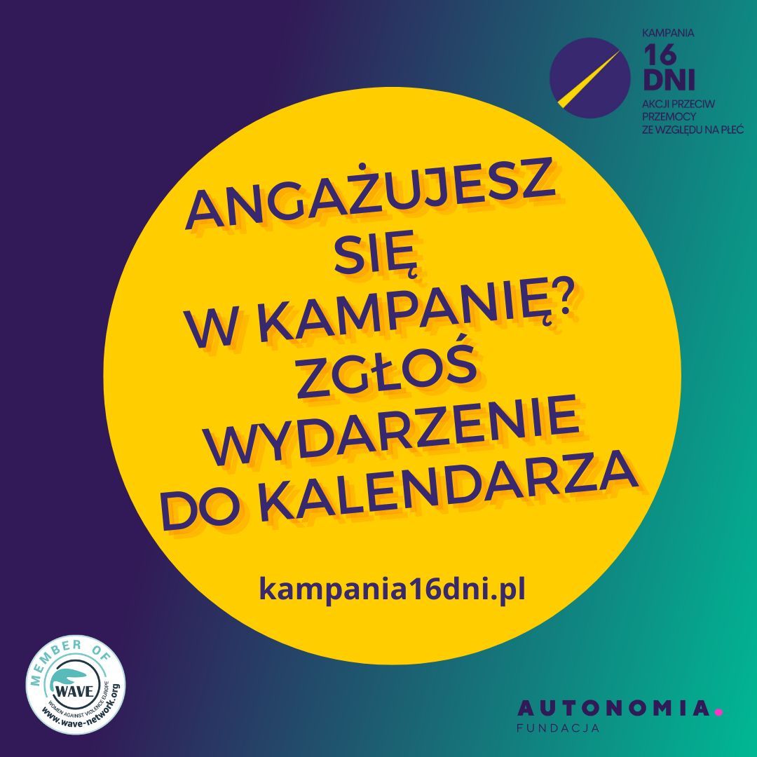 Kampania "16 dni akcji przeciwko przemocy ze względu na płeć" - dodaj lub znajdź wydarzenie