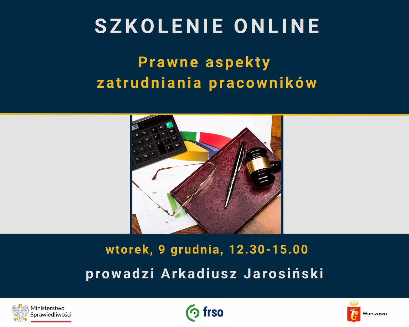 Fundacja Rozwoju Społeczeństwa Obywatelskiego w ramach programu „Udzielanie nieodpłatnej pomocy prawnej oraz zwiększanie świadomości prawnej społeczeństwa i świadczenia nieodpłatnego poradnictwa obywatelskiego” zaprasza osoby zainteresowane problematyką zatrudniania na bezpłatne szkolenie „Prawne aspekty zatrudniania pracowników”, które odbędzie się 9 grudnia 2025 na platformie ZOOM. Zgłoszenia przyjmujemy do 4.12.2025 roku.