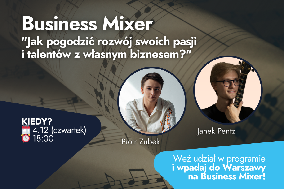 Czy zdarzyło Ci się myśleć o swoich talentach jako nieżyciowych i niepraktycznych? Proponujemy inną perspektywę. Spotkaj się z nami w Warszawie – już 4 grudnia 2025 r. weź udział w Business Mixerze pt. “Jak pogodzić rozwój swoich pasji i talentów z własnym biznesem?”. Trwają zapisy.