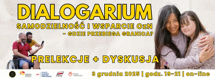 3 grudnia, w Międzynarodowy Dzień Osób z Niepełnosprawnościami, weźmiemy na tapet podmiotowość osób z niepełnosprawnościami i ich decyzyjność w procesie otrzymywania wsparcia. Najpierw nasi Prelegenci podzielą się swoim doświadczeniem w tym temacie, a następnie każdy chętny będzie miał szansę zadać pytanie lub podzielić się własną perspektywą.