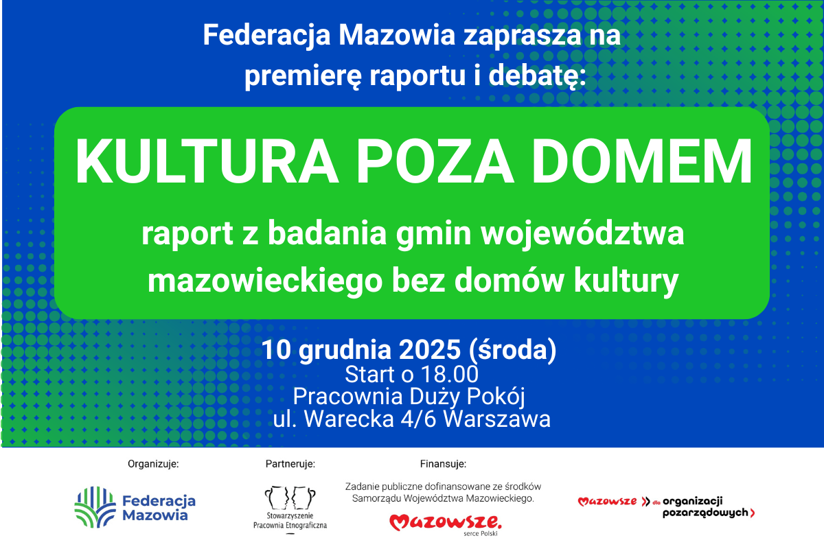 Premiera Raportu Federacji Mazowia: POZA DOMEM - Kultura w mazowieckich gminach bez domów kultury