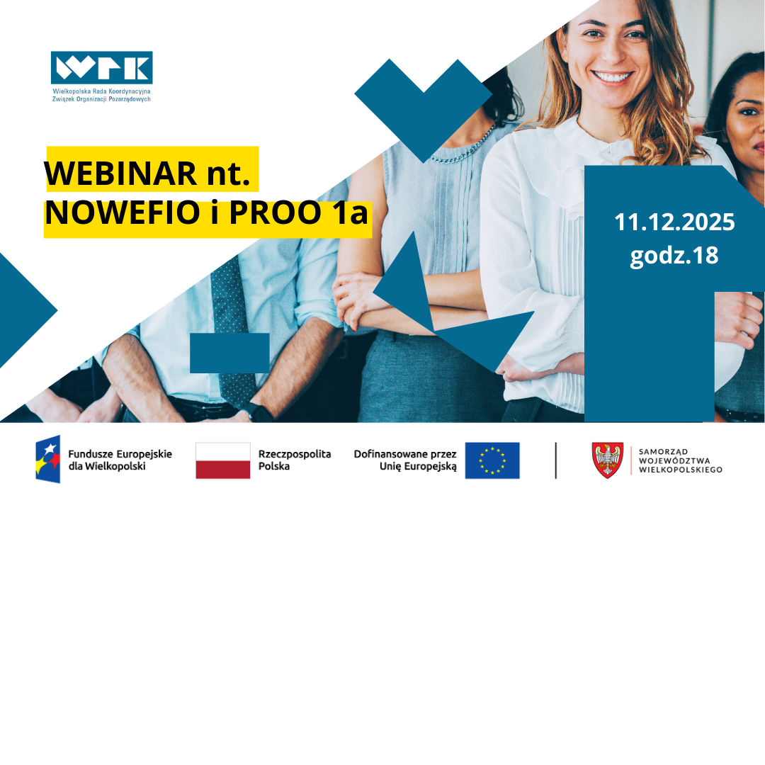 Narodowy Instytut Wolności ogłosił konkursy w ramach programów wspierających rozwój społeczeństwa obywatelskiego. W ramach cyklu spotkań „O funduszach po ludzku”, zapraszamy wielkopolskie organizacje pozarządowe, które chciałyby ubiegać się o dotację w konkursach NOWEFIO 2026 lub PROO 1a 2026, na spotkanie on-line w czwartek 11 grudnia o godz. 18.