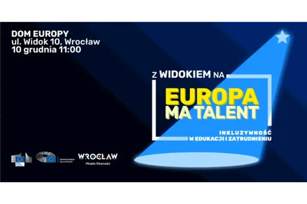 Przedstawicielstwo Regionalne Komisji Europejskiej w Polsce oraz Biuro Parlamentu Europejskiego we Wrocławiu zapraszają do udziału w panelu dyskusyjnym poświęconym równości i niedyskryminacji w edukacji i miejscu pracy pt. „Z Widokiem na inkluzyjność w miejscu pracy”, które odbędzie się 10 grudnia 2025 r. o godzinie 11:00 we wrocławskim Domu Europy przy ul. Widok 10.