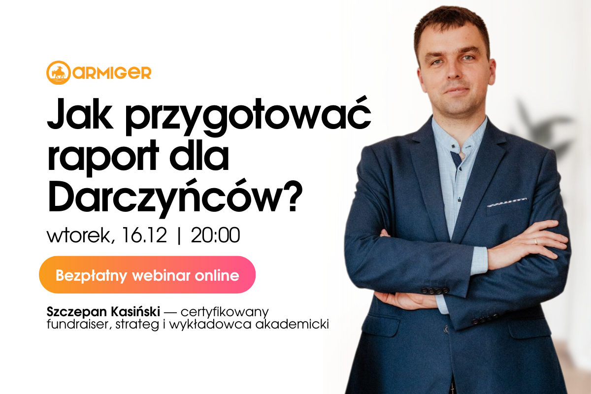 Webinar poprowadzi Szczepan Kasiński — certyfikowany fundraiser, trener fundraisingu, strateg i wykładowca akademicki, który pomógł organizacjom zebrać miliony złotych na realizację ich misji.