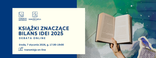 W środę, 7 stycznia w godz. 17:00-19:00 zapraszamy na transmisję debaty „Książki znaczące. Bilans idei 2025”. Poprosiliśmy 17 redakcji o przedstawienie trzech najważniejszych książek polskich autorów oraz trzech przekładów wydanych w mijającym roku. „Bilans idei 2025” to nieformalny początek poszukiwań książki-laureatki kolejnej edycji Nagrody im. Marcina Króla.
