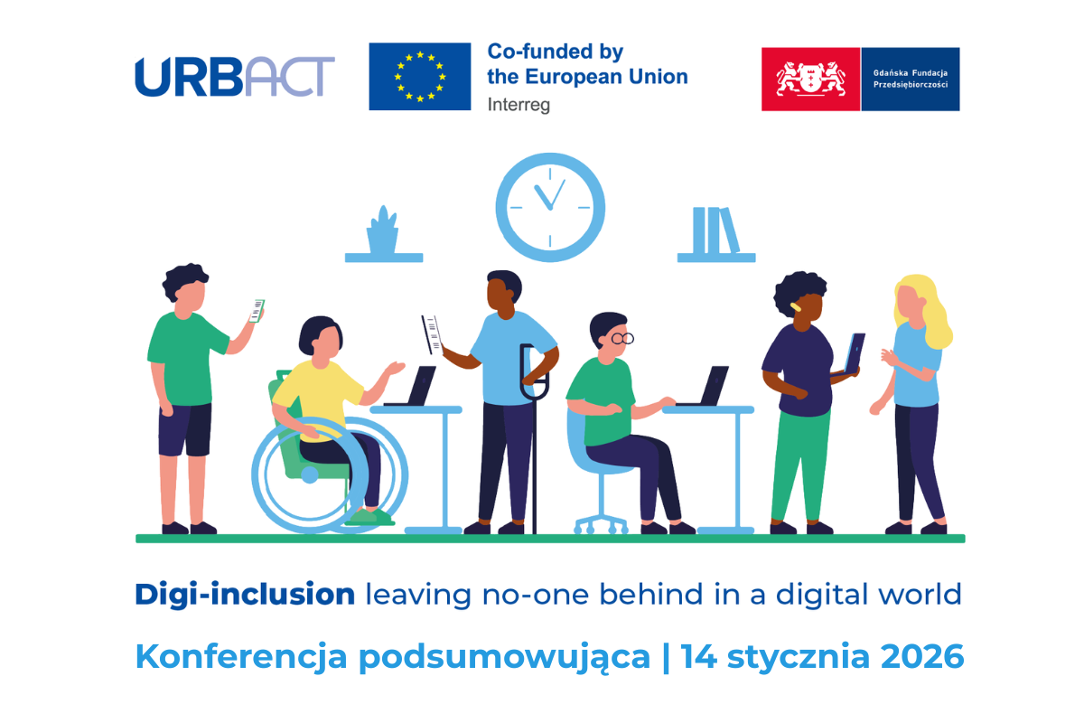 W środę, 14 stycznia 2026 r, w Gdańsku odbędzie się konferencja podsumowująca projekt „DIGI-INCLUSION – leaving no-one behind in a digital world”. Projekt poświęcony był wypracowaniu pomysłów na zmniejszenie przepaści cyfrowej w miastach i regionach europejskich. W trakcie wydarzenia zaprezentujemy działania zaplanowane dla Gdańska. Podzielimy się też pomysłami wypracowanymi przez mniejsze miasta uczestniczące w naszej międzynarodowej sieci.