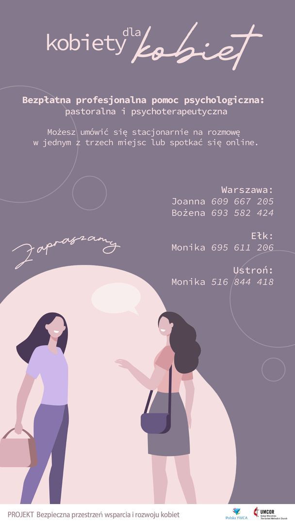 Pomoc udzielana jest bezpłatnie dzięki finansowemu wsparciu działań Ywca Polska przez United Methodist Committee on Relief [UMCOR] w ramach projektu: „Bezpieczna przestrzeń rozwoju i wsparcia dla kobiet”.