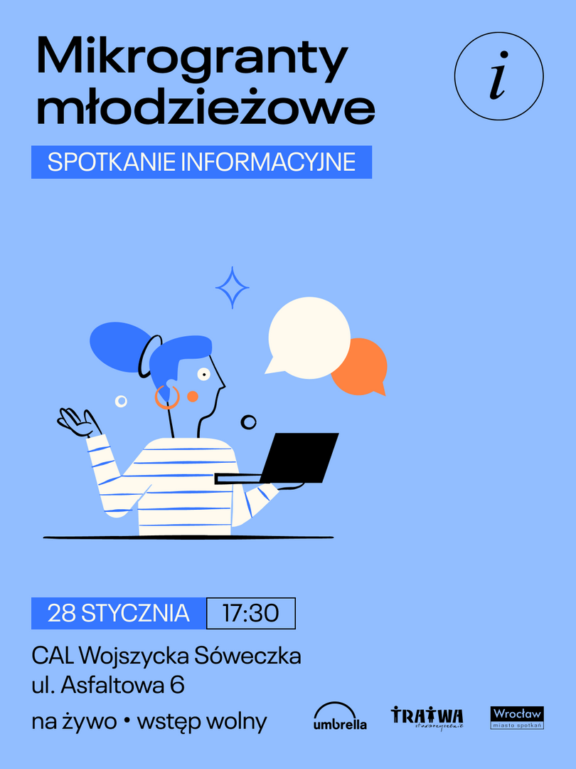 Zapraszamy na SPOTKANIE INFORMACYJNE MIKROGRANTÓW MŁODZIEŻOWYCH PRZED NABOREM WNIOSKÓW, który startuje już 1 lutego. Dowiecie się, jakie zasady obowiązują w Mikrograntach młodzieżowych 2026 oraz tego, jak przygotować dobry projekt społeczny.