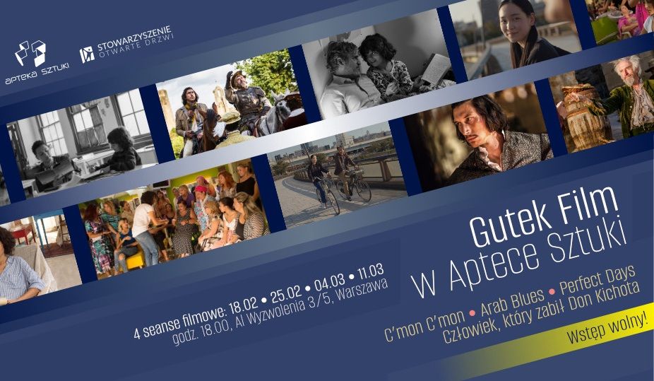 Już za 3 tygodnie, w środę, 18 lutego (godz. 18:00) Galeria Apteka Sztuki zamienia się w kino studyjne. Zapraszamy na bezpłatne pokazy filmowe - Warszawa, Al. Wyzwolenia 3/5. Jako pierwszy z cyklu: „C’mon C’mon”, reż. Mike Mills. Kolejne pokazy w środowe wieczory: 25 lutego, 4 i 11 marca. Lokal naszej galerii jest dostosowany do potrzeb osób z niepełnosprawnością ruchową.