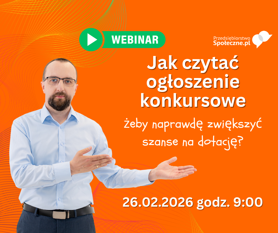 Uwaga: webinar jest bezpłatny, a nagranie nie będzie ogólnodostępne – zostanie dołączone do naszego kursu online: „Jak napisać dobry wniosek i pozyskać dotację na projekt społeczny?”.