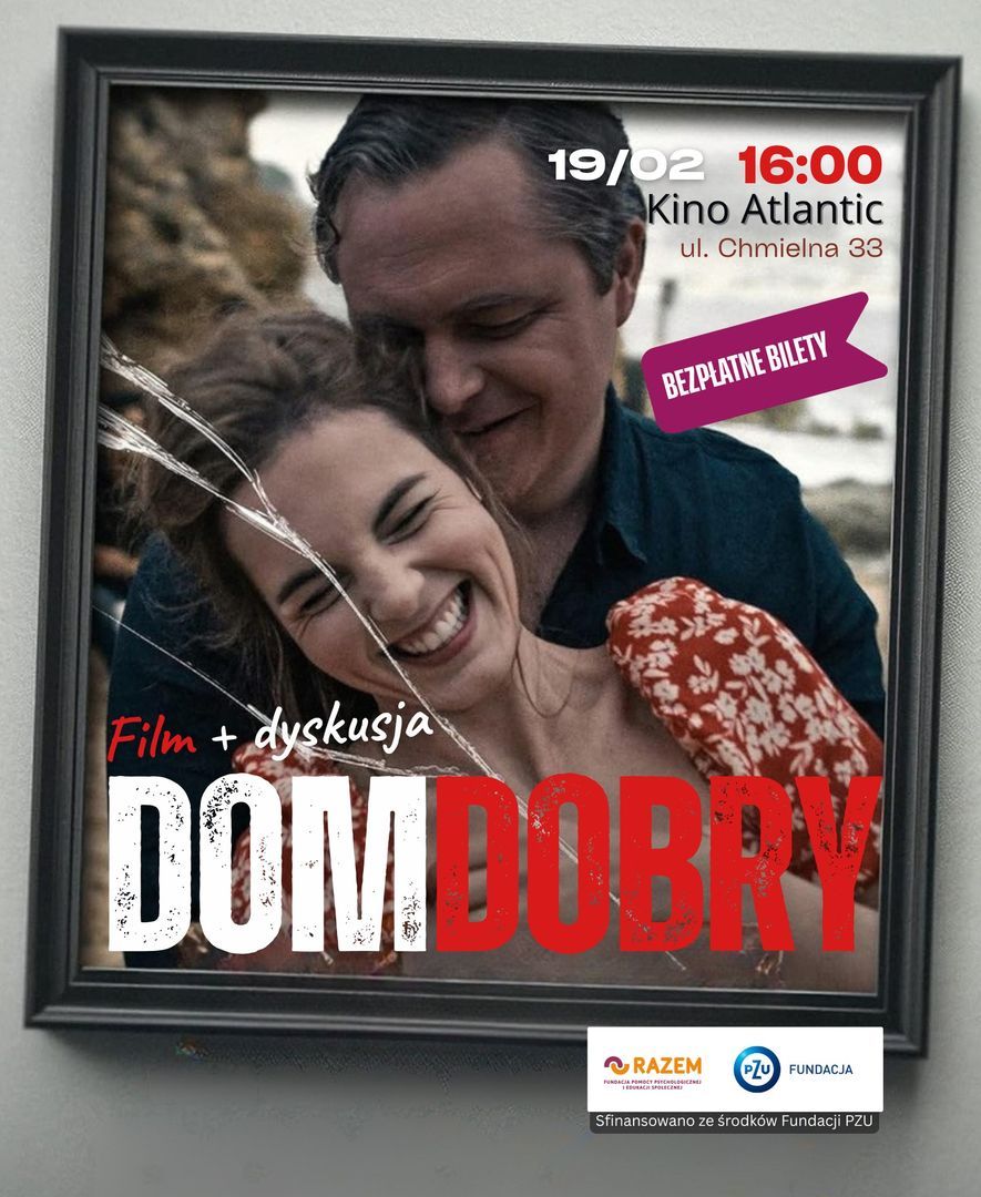 Fundacja Pomocy Psychologicznej i Edukacji Społecznej RAZEM zaprasza na pokaz filmu "Dom Dobry", który odbędzie się 19.02.2026 w Kinie Atlantic. Po filmie dyskusja ze specjalistą na tematy poruszane w filmie. ZADZWOŃ 733 563 311 I ZAREZERWUJ SOBIE BILET.