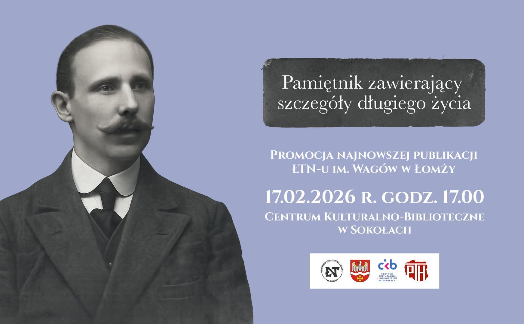 Sokolska promocja najnowszej publikacji ŁTN-u – „Pamiętnika zawierającego szczegóły długiego życia” – 17.02.2026, godz. 17.00 w Centrum Kulturalno-Bibliotecznym w Sokołach, ul. Kolejowa 3, 18-218 Sokoły.