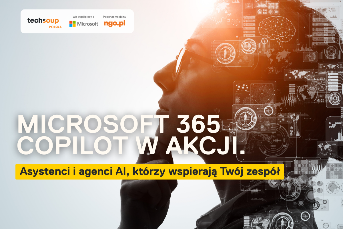 Microsoft 365 Copilot w akcji. Asystenci i agenci AI, którzy wspierają Twój zespół to trzeci mini-kurs w programie „AI, czyli sztuczna inteligencja w NGO”, realizowanym przez TechSoup Polska ze wsparciem Microsoft AI Skills.