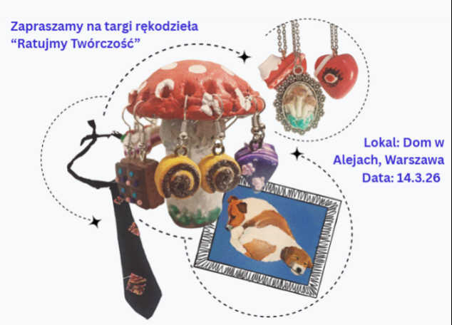 Ratujmy Twórczość to jedyne takie targi rękodzieła w warszawie, gdzie młodzi twórcy mogą się bezpłatnie wystawić, a odwiedzający nie płacą za bilety. Możecie u nas: nabyć unikatowe, robione od serca przedmioty, biżuterię, ubrania, plakaty i wiele, wiele innych; wesprzeć tym samym młodych artystów, a nie korporacje fast fashion; wziąć udział w darmowych warsztatach i samemu się czegoś nauczyć!