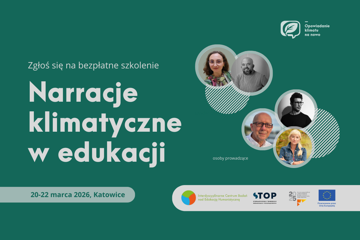 Po bardzo dobrze przyjętej pierwszej edycji wracamy z rozszerzoną, trzydniową odsłoną warsztatu „Narracje klimatyczne w edukacji”. Tym razem spotkamy się w Katowicach, w gościnnych progach Uniwersytetu Śląskiego, by wspólnie przyjrzeć się temu, jak język kształtuje naszą wyobraźnię klimatyczną.