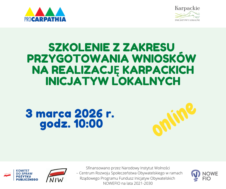 3 marca 2026 roku (wtorek) w godzinach 10:00 - 11:00 zapraszamy na szkolenie z zakresu przygotowywania wniosków na realizację karpackich inicjatyw lokalnych.