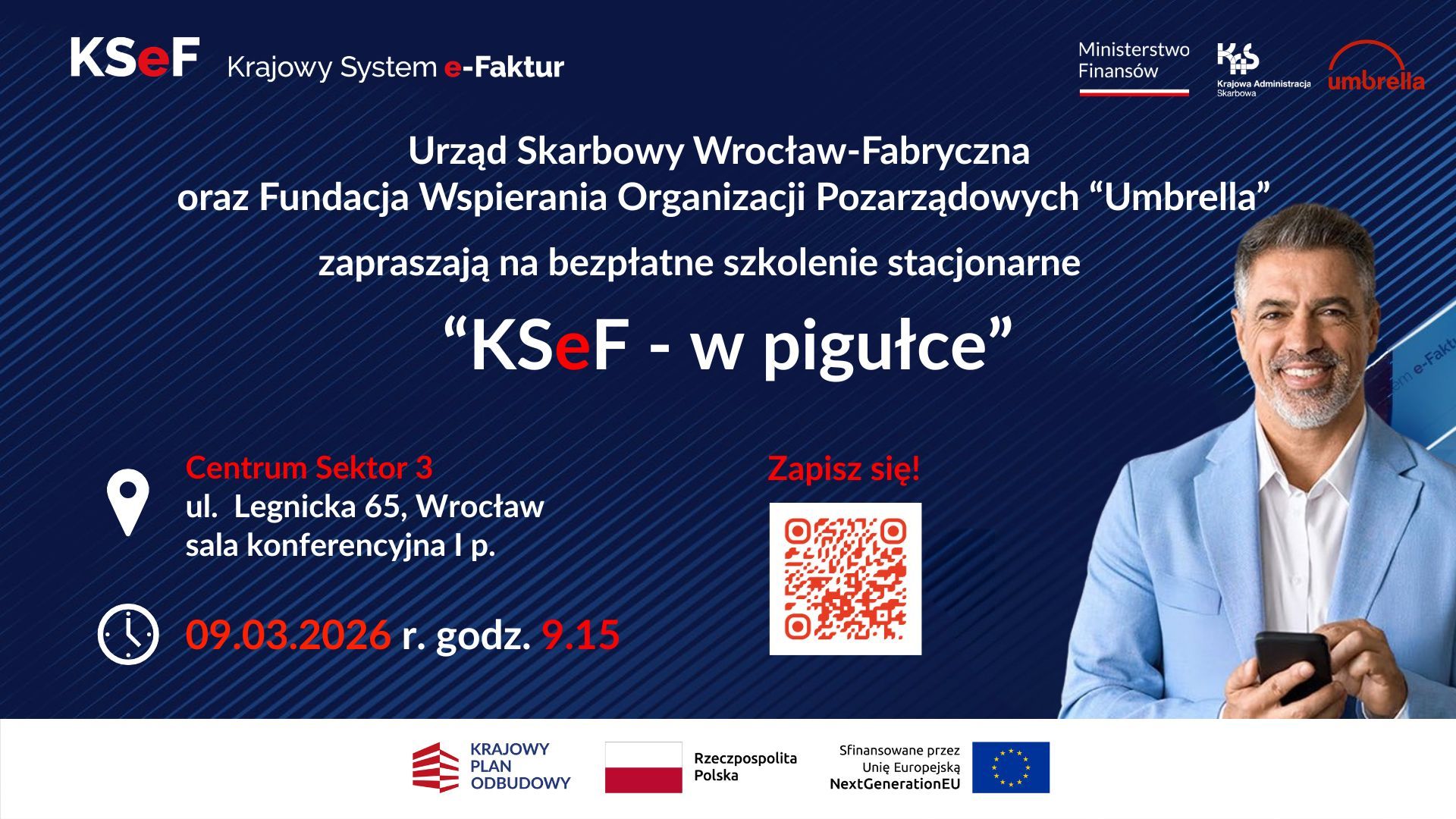 Szkolenie odbędzie się 9.03.26 w Centrum Sektor 3 na Legnickiej 65B. Zaproszone są wszystkie zainteresowane organizacje pozarządowe oraz osoby planujące korzystanie z KSeF w ramach działalności NGO.