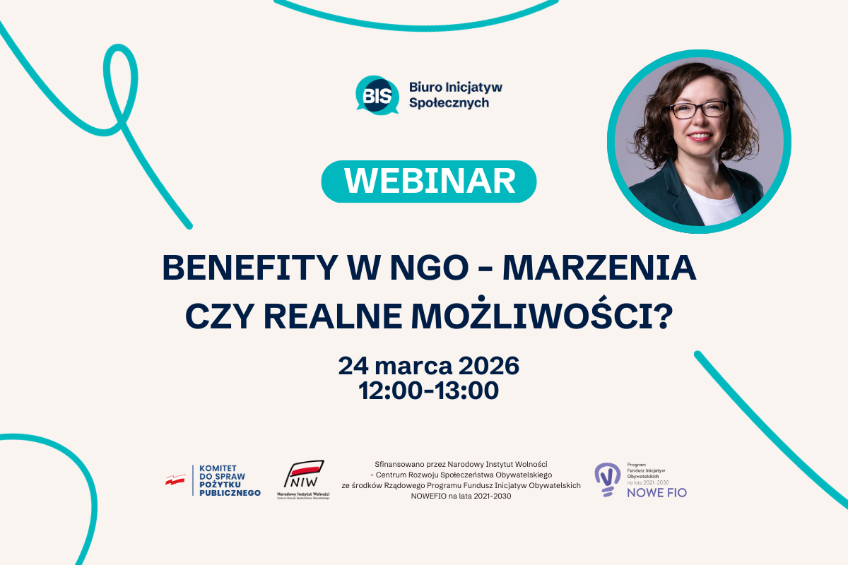 Podczas webinaru sprawdzimy, czy organizacje pozarządowe mogą oferować pracownikom atrakcyjne benefity. Zastanowimy się, czy to rzeczywiście domena tylko dużych NGO, czy też mniejsze organizacje również mają takie możliwości. Wspólnie przyjrzymy się temu tematowi i poszukamy realnych rozwiązań, które można zastosować w organizacjach pozarządowych.