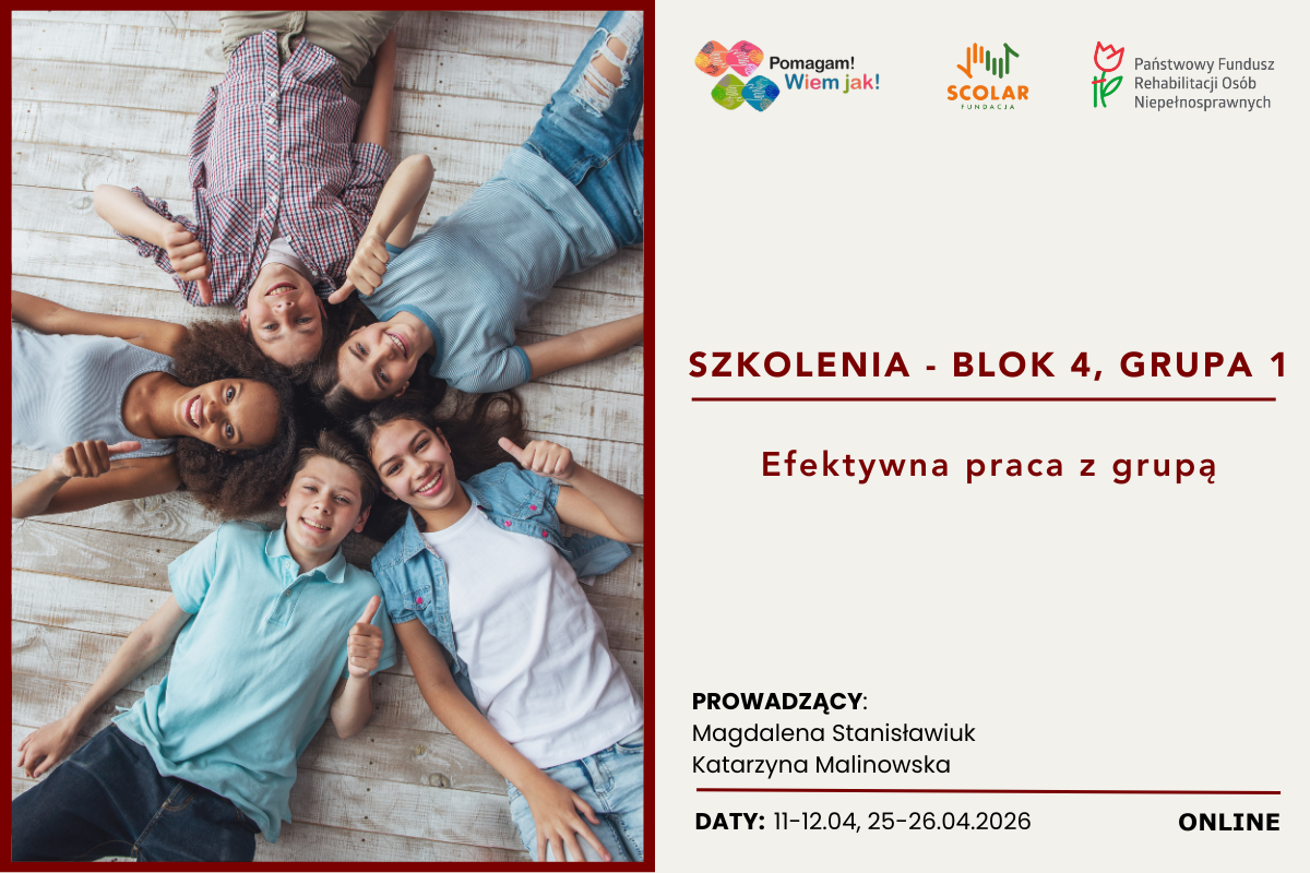 Program szkoleń dla otoczenia osób z ZA, autyzmem, współfinansowany z PFRON- Blok 4 Grupa 1