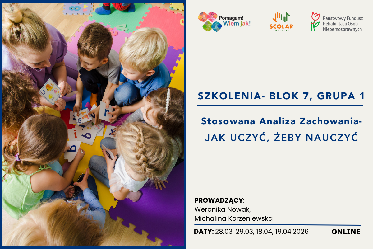 Informujemy o otwarciu zapisów na pierwszą grupę w BLOKU 7 pt. "Stosowana Analiza Zachowania- jak UCZYĆ, żeby NAUCZYĆ" (ON-LINE)! Początek już 28.03!