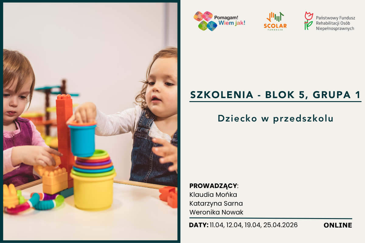 Zapraszamy specjalistów do zapoznania się ofertą szkoleniową, można wziąć udział w jednym bloku szkoleniowym spośród 8 proponowanych: https://scolar.pl/szkolenia-7/.