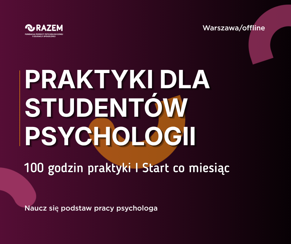 Szukasz praktyk na studia z psychologii? Zapraszamy do Fundacja Pomocy Psychologicznej i Edukacji Społecznej RAZEM