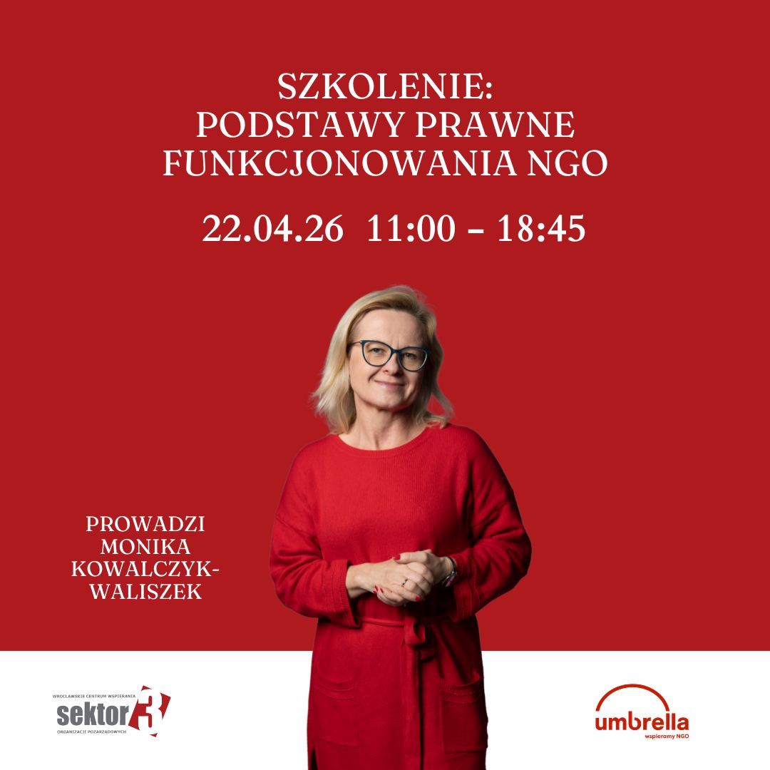 Autor/źródło: Aleksandra DolnaZapraszamy Was na szkolenie: Podstawy prawne funkcjonowania NGO, które odbędzie się już 22.04.26 w godz. od 11:00 do 18:45 w Centrum Sektor 3.