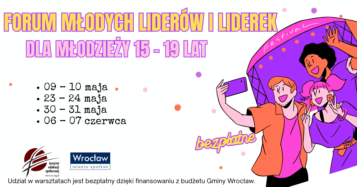 Instytut Edukacji Społecznej zaprasza młodzież (15-19 lat) z wrocławskich szkół na Forum Młodych Liderów i Liderek,czyli cykl warsztatów i spotkań!