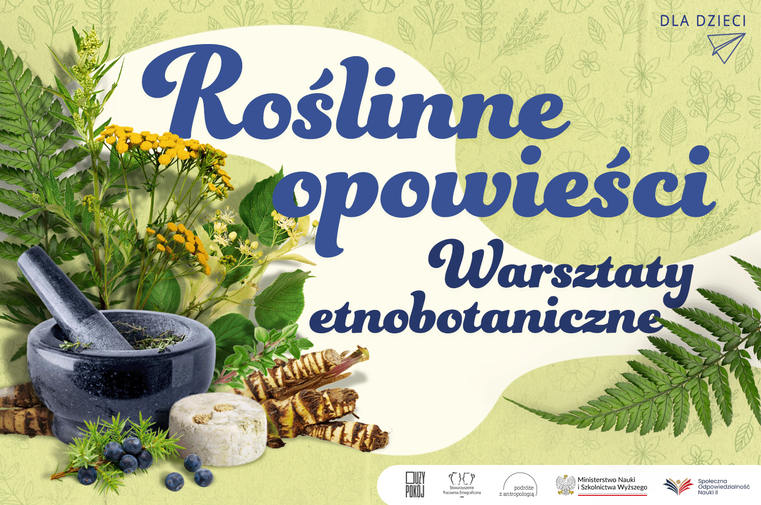 Stowarzyszenie Pracownia Etnograficzna zaprasza dzieci w wieku przedszkolnym i wczesnoszkolnym wraz z rodzicami/opiekunami na bezpłatne zajęcia pt. "Roślinne opowieści. Warsztaty etnobotaniczne".