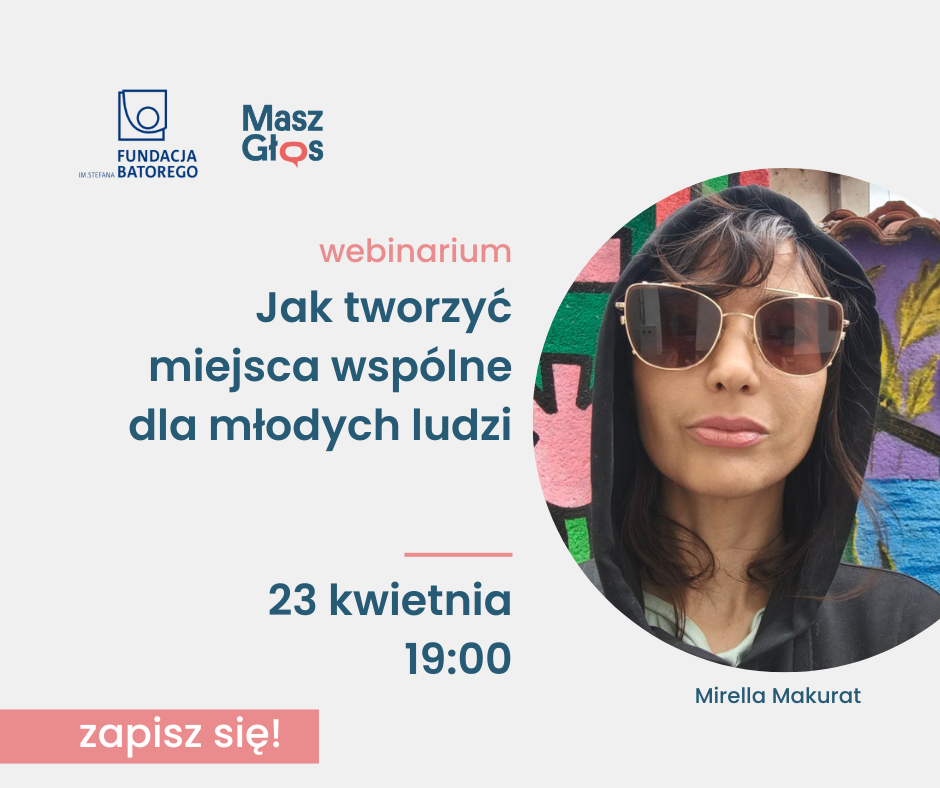 Dawniej wychodziło się na ławkę, trzepak albo do kogoś do domu, żeby się spotkać i pogadać. A dziś? Gdzie są miejsca, w których młodzi ludzie mogą być razem – bez presji kupowania, bez oceniania, na własnych zasadach? Jak je tworzyć? Jak animować? Zapraszamy Was na webinarium akcji Masz Głos Fundacji Batorego już 23 kwietnia o 19:00.