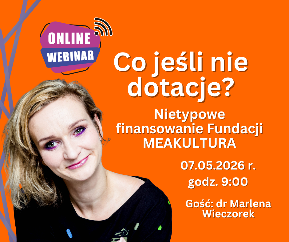 Prowadzący: naszym gościem będzie dr Marlena Wieczorek – prezeska zarządu Fundacji MEAKULTURA (fundacjameakultura.pl). Od lat zarządza organizacją działającą na styku kultury, edukacji i mentoringu rozwijając jej działania w oparciu o różne modele finansowania. W swojej pracy łączy perspektywę zarządczą i operacyjną – odpowiada za kierunek rozwoju fundacji, decyzje finansowe i budowanie jej stabilności. Podczas webinaru podzieli się doświadczeniem wynikającym z realnych decyzji, zmian i konsekwencji, które pojawiają się w prowadzeniu organizacji.